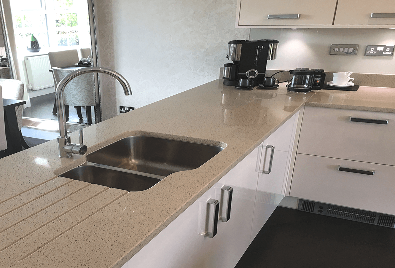 Creme Diamond Mirror Quartz Kitchen Work Surfaces