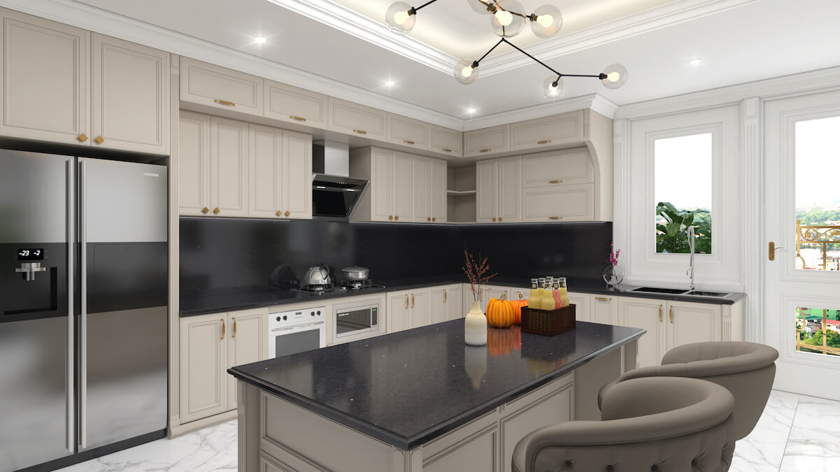 In addition to its striking appearance, Black Diamond Mirror quartz is highly durable and resistant to stains and scratches. It’s also easy to maintain, requiring just a simple wipe-down to keep its glossy finish intact. This material brings both beauty and practicality to your kitchen.